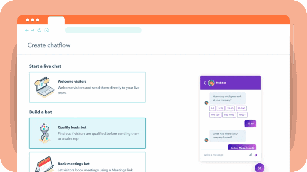 Add a live chat widget to your website to answer questions instantly or capture leads 24/7 using simple bots, all conversations are logged against contact records for easy follow-up.